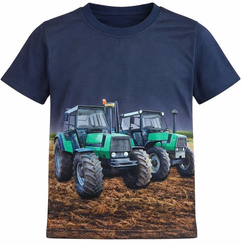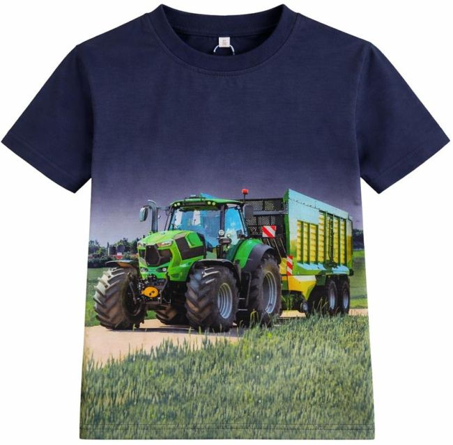 T-shirts met Tractor bedrukking Kleur : donkerblauw Aantal: 6 Maten tussen: 2- 4- 6- 8- 10- 12