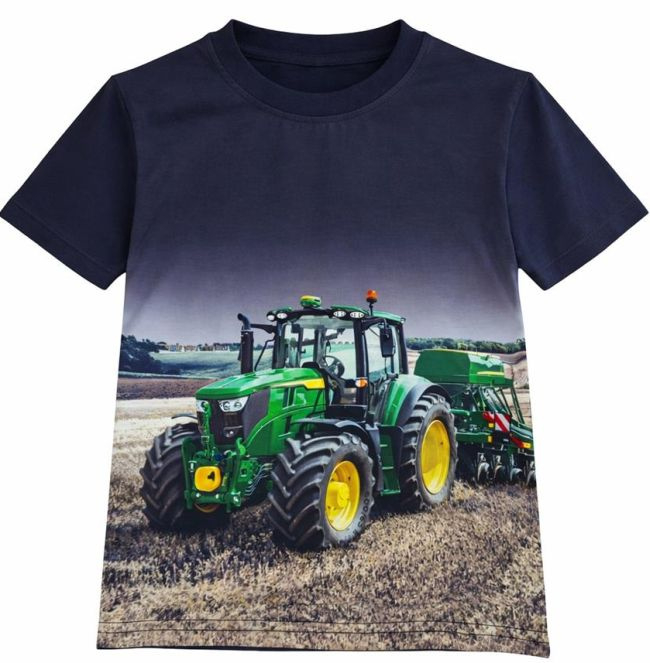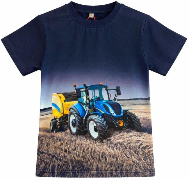T-shirts met Tractor bedrukking Kleur : donkerblauw Aantal: 6 Maten tussen: 2- 4- 6- 8- 10- 12